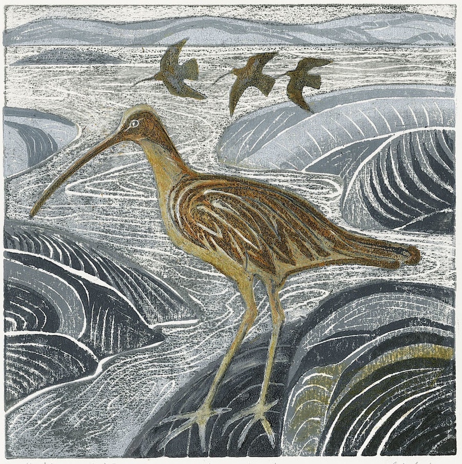The Curlews in the Estuary – but for how long? is a series with the story of the curlew’s plight inscribed into the wet ink. This woodcut print was selected for the Wildlife Artist of the Year Exhibition in 2021 and won The Artist Award.