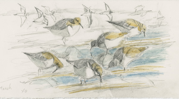 Known collectively as a fling of dunlin they gather together like a shoreline starling.
