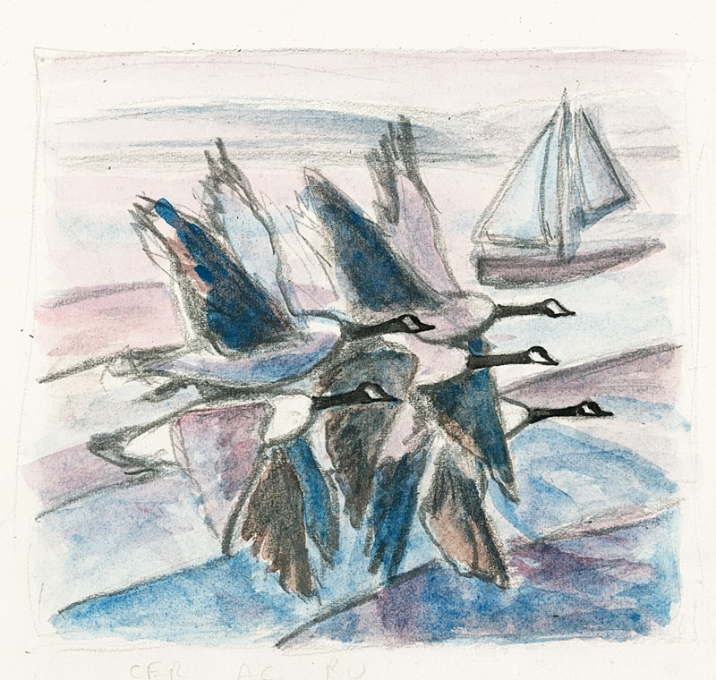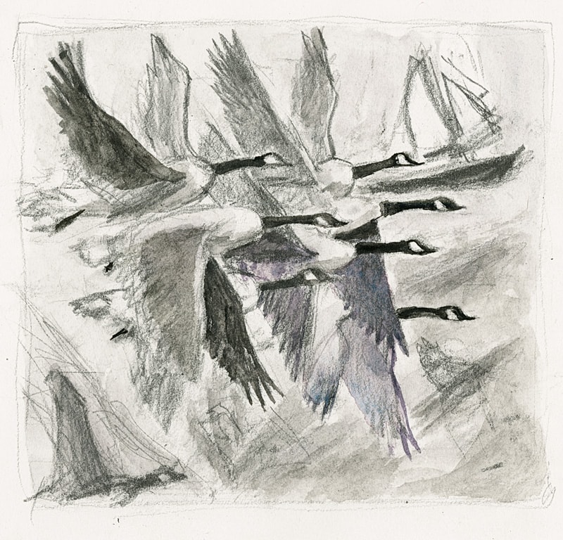 I have watched many skeins of geese, but never in this formation. I simply love this grouping! The combination of vertical, triangular wings with outstretched horizontal heads is so striking.