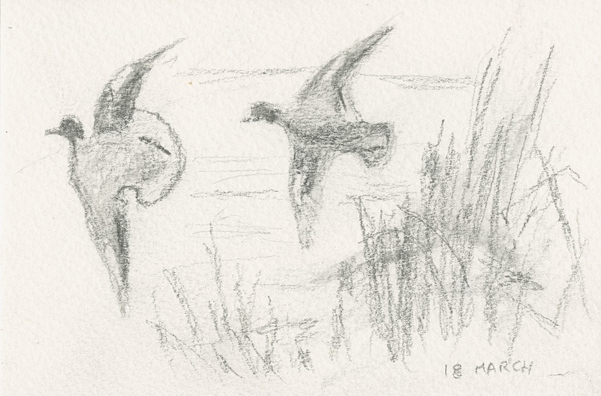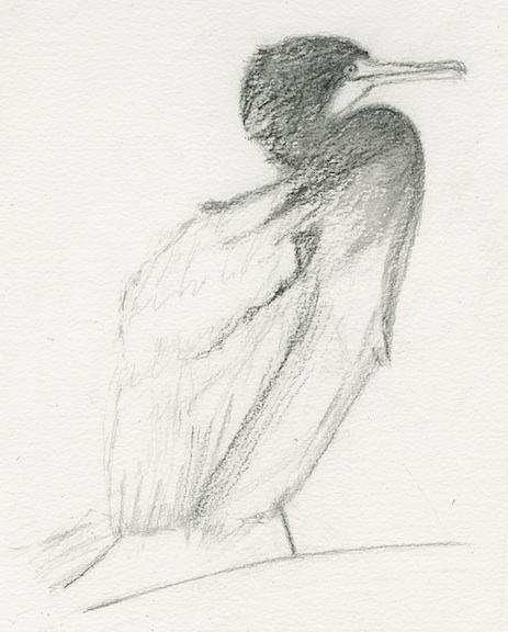 The distinctive shape of cormorants – wonderful birds to sketch.